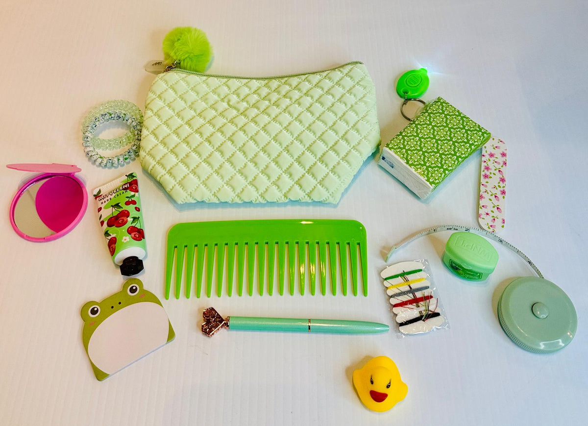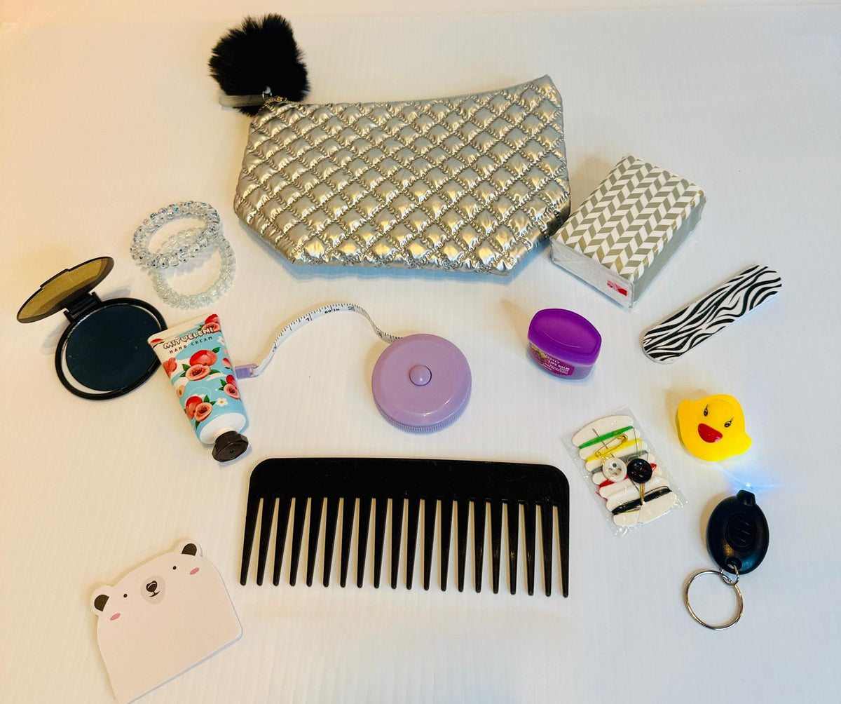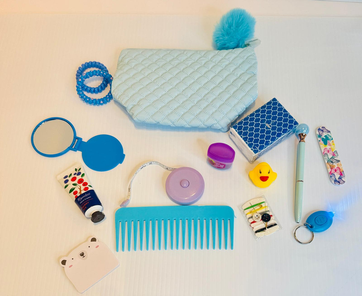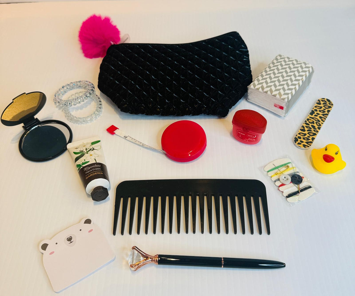 Stay ready for anything with this chic velvet pouch topped with a playful pom-pom! Inside, you’ll find all the “just-in-case” essentials to keep you polished, prepared, and stress-free wherever life takes you.