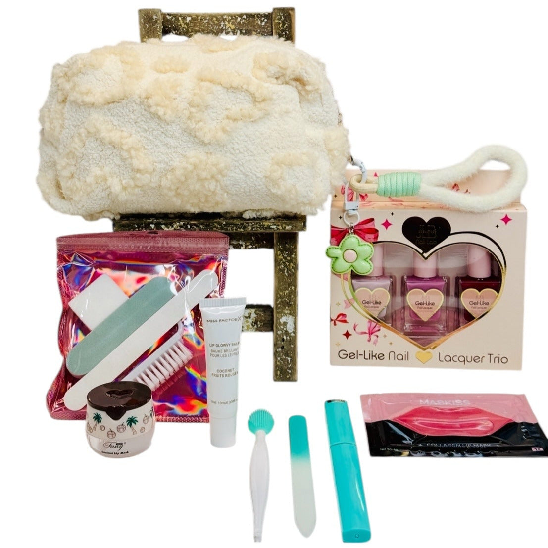 Skincare Storage Pouch, Makeup Organizer, Coin Purse for Lipstick and Cosmetics, Travel Packing Case, 1 manicure set,1 lip gloss, 1 cherry lip gloss, 1 nail file and traveling case, 1, collagen lip mask and 3 gel like nail polish.