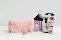 This plush cosmetic set is a curated beauty bundle combining style, convince and essential lash care. Eyelash curler, false eyelashes, including glue, growth serum and mascara to enhance and lengthen.