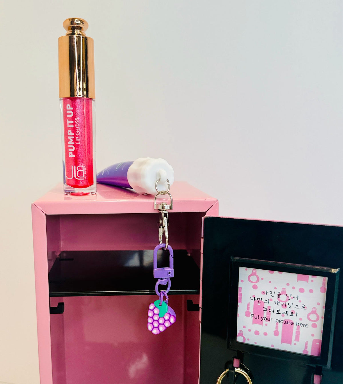 Unlock your glam! This mini pink locker is packed with Pop and Pretty treasures—lipsticks, glossy shine tubes, juicy lip plumpers, creamy balms, and a bold liner to complete your look. Plus, every locker hides a surprise accessory like our fuzzy owl pom-pom keychain!