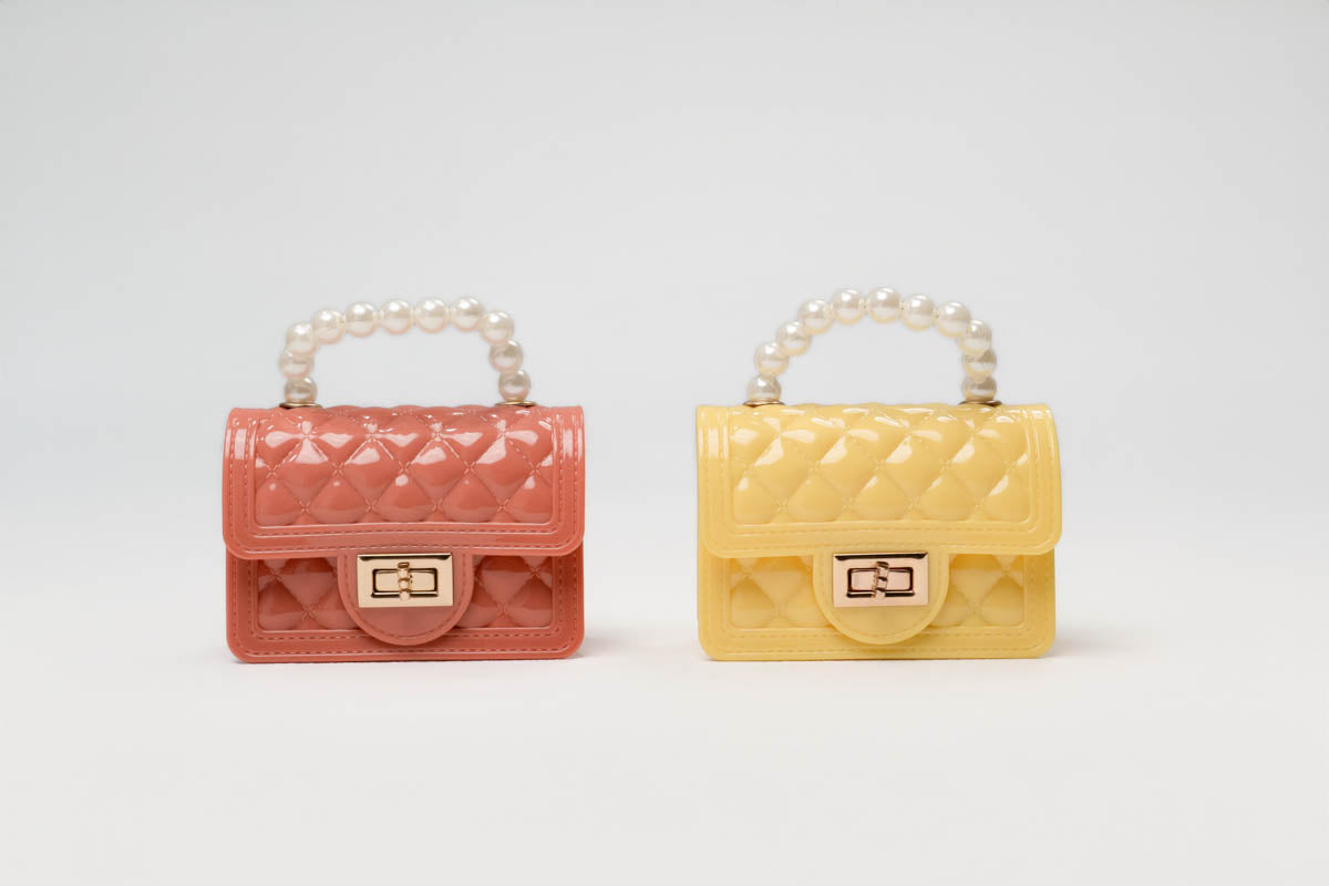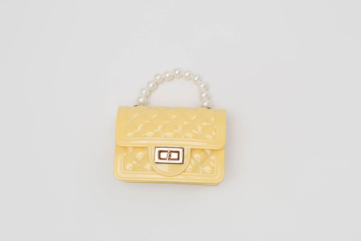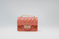 • Handle: A short top handle made of large, lustrous faux pearls, giving it a chic and feminine touch.