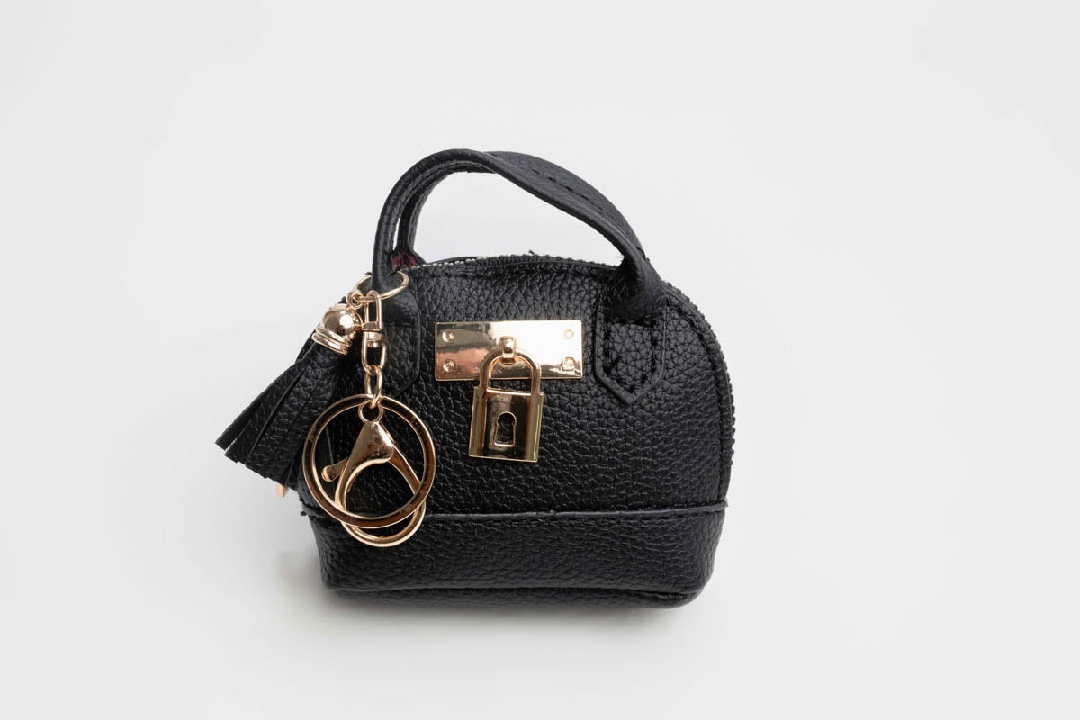 Women's Mini Fashion Keychain Bag with Ring Buckle, Decorative PU Leather Coin Purse, Novelty Small Key Ring Wallet with Tassel so darn cute. With Perfume Bottle and Mini Duck