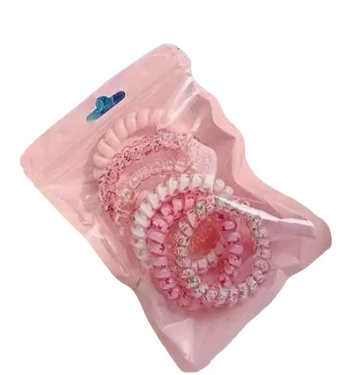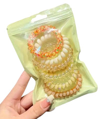 These vibrant telephone wire hair ties are soft on strands but strong on style. Designed to hold your hair without pulling, creasing, or tangling, they’re perfect for ponytails, top knots, and wrist-ready flair.