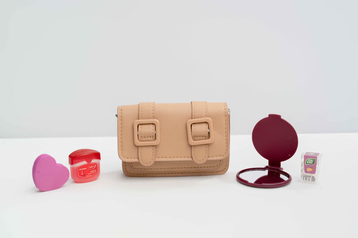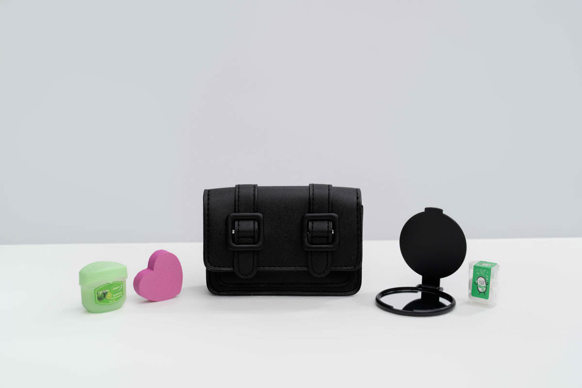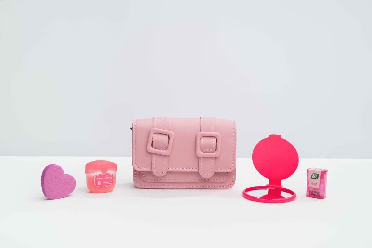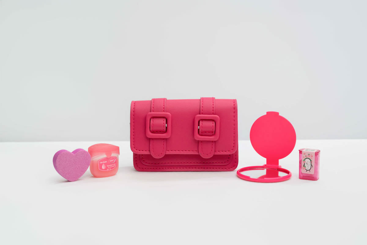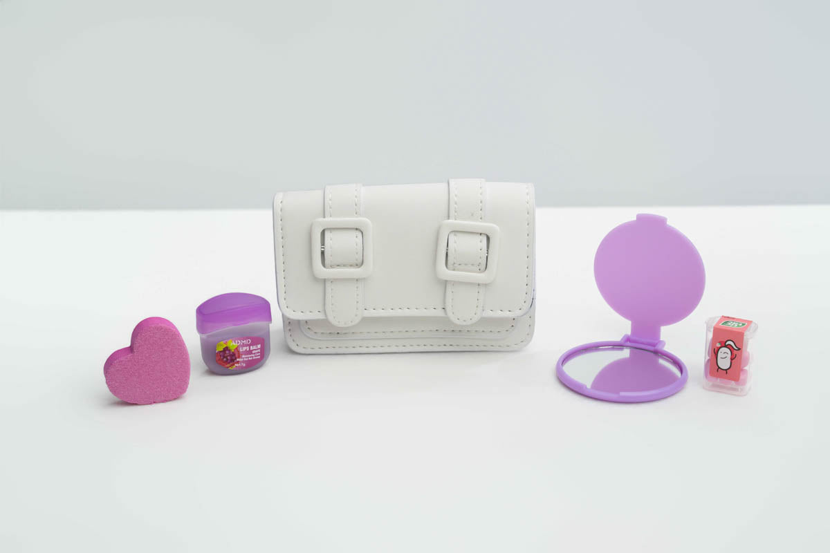 Double Strapped mini purse Set in many colors including, heart shaped nail file, lip balm, compact mirror and tic tac Lip Balm a must have !!