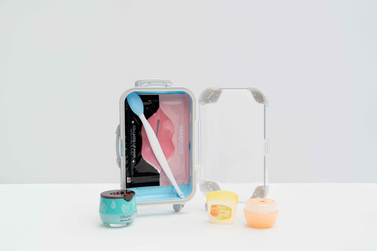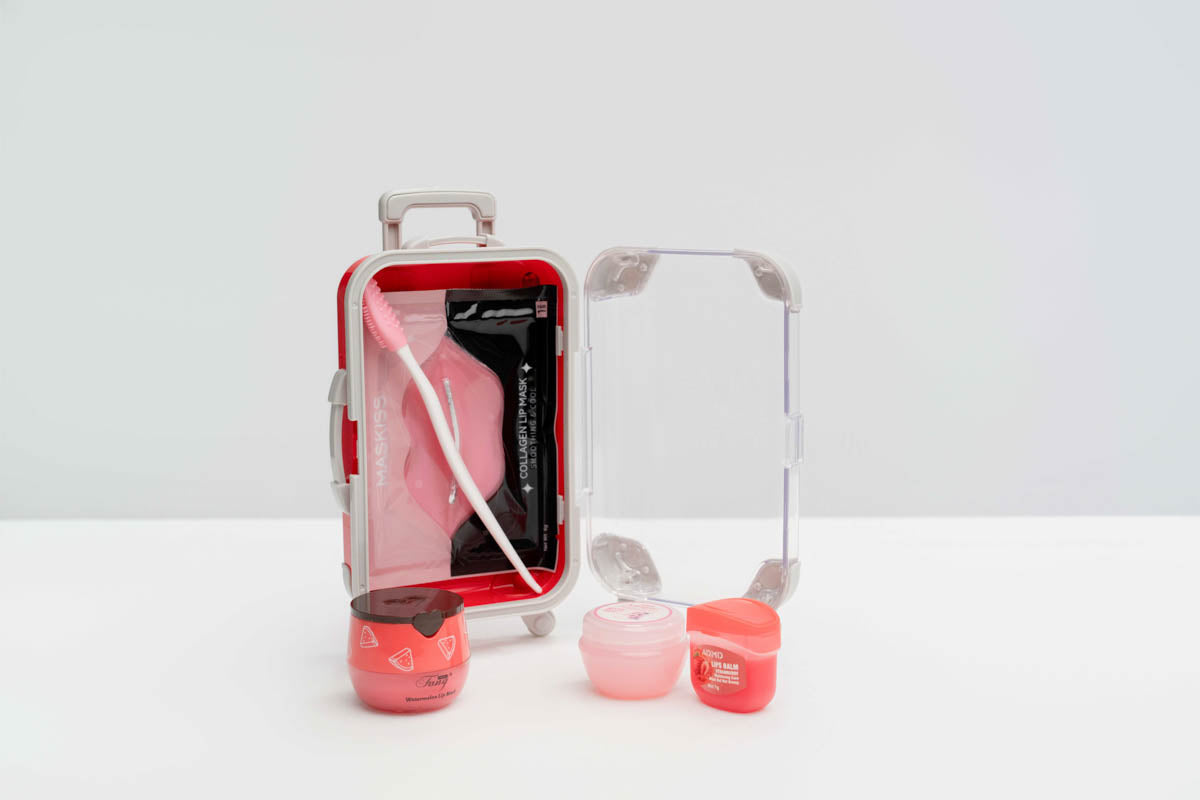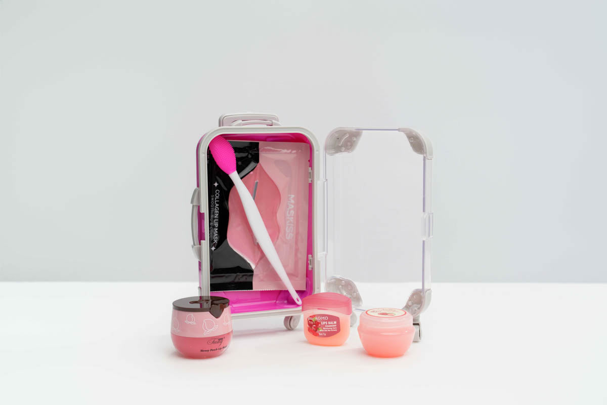 Rolling Mini-Suitcase – includes PURE Hydrating lip oil, Miss Factorx Lip Gloss and Rock and Beauty Lip Gloss. And Lip Balm SO darn cute